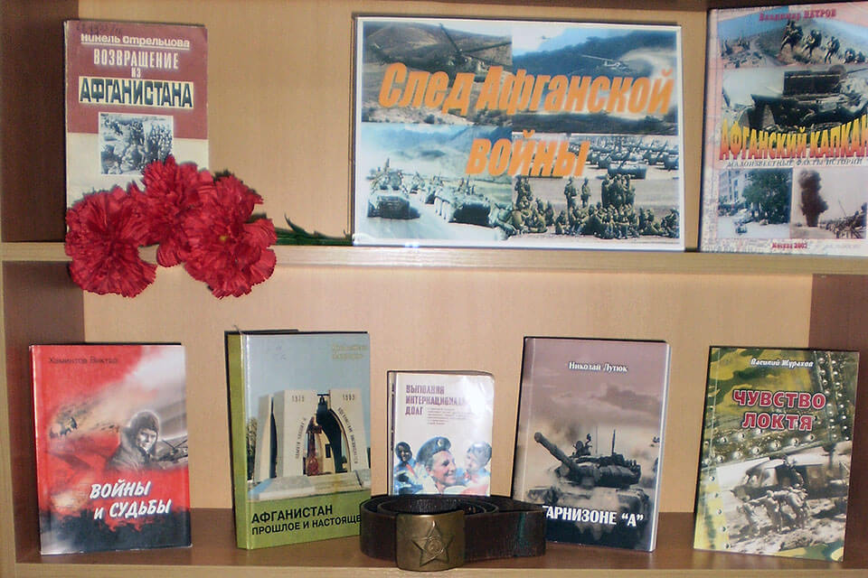 Книжная экспозиция «Воины Афганистана» в библиотеке школы - интерната предложила читателям книги-воспоминания воинов, выполнявших интернациональный долг, произведения и публикации о героях войны в Афганистане.